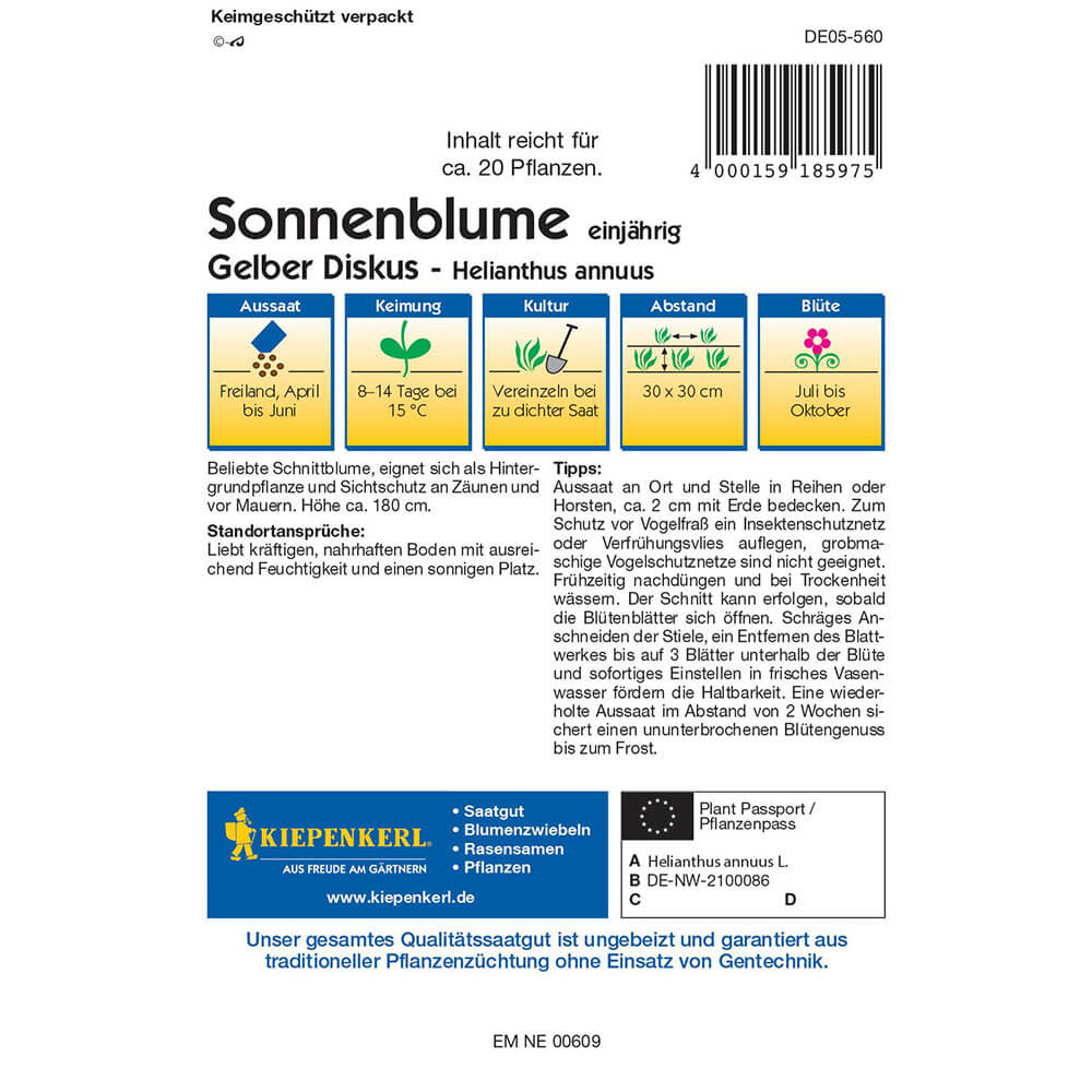 Sonnenblume 'Gelber Diskus' Helianthus annuus - Bestellnummer 9900752