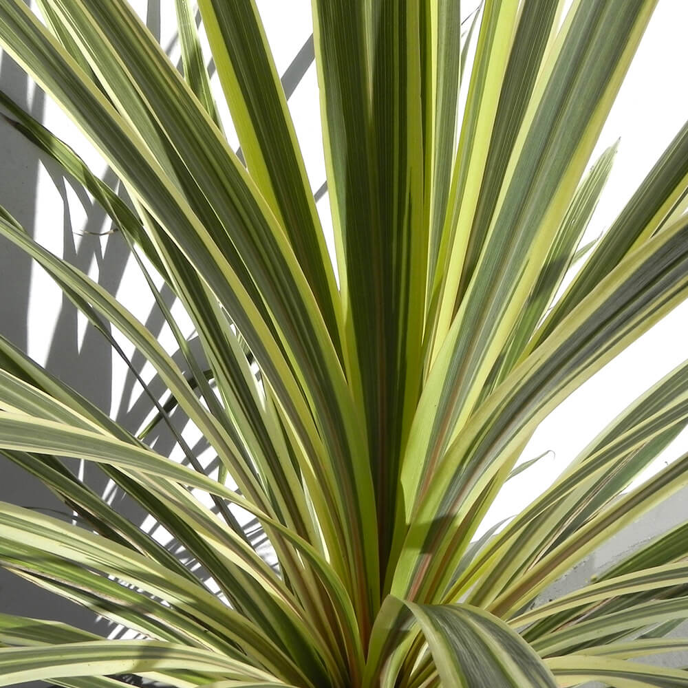Die grün-gelbe Keulenlilie (botanisch: Cordyline spp.) ist eine elegante, exotisch anmutende Kübelpflanze, die dem Stil von Yucca oder Dracaena ähnelt, jedoch zur Familie der Agavengewächse zählt. Mit ihrem schlanken, verholzten Stamm und der endständigen Rosette aus schwertförmigen Blättern setzt sie optische Akzente in hellen Wohnräumen, auf dem Balkon oder der Terrasse. Die Blätter zeigen je nach Sorte Farbvarianten von intensivem Grün über dunkles Purpur bis hin zu Rot oder mehrfarbig panaschiert und bringen damit Farbe in jedes Ambiente. Ab Juli bis August entwickelt sich bei älteren Exemplaren ein eleganter Blütenstand aus cremeweißen bis violetten Rispen – auf Wunsch gefolgt von attraktiver Verzweigung. Kurzzeitig sind einstellige Minusgrade tolerierbar, doch idealerweise überwintert die Keulenlilie im hellen Innenraum bei Temperaturen zwischen 5 °C und 10 °C.