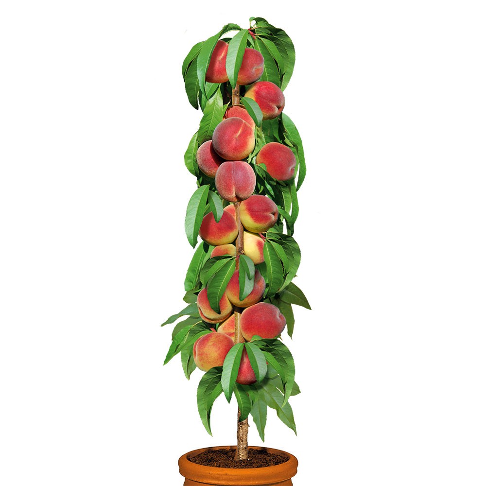 Der Säulen-Pfirsich Aida gehört zu den schönsten Pfirsichen, die sie im heimischen Garten oder auf Ihrem Balkon beherbergen können. Die schmalen und satt grünen Blätter bilden einen wundervollen Farbkonstrast zu den rotgelb leuchtenden Pfirsichen. Die Früchte des Pfirsich Aida sind außergewöhnlich saftig, groß und besonders aromatisch. Die Haut der Früchte der Paradiso® Säule Aida ist standesgemäß pfirsichzart. Der Säulen-Pfirsich Aida wächst sowohl hoch als auch schlank und ist eine absolute Schönheit! Erntezeit ist von Juli bis August!