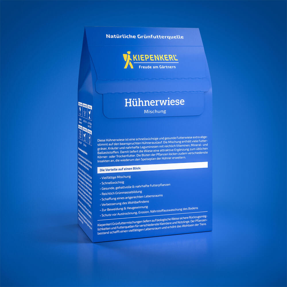 Entdecken Sie die Kiepenkerl Hühnerwiese – eine schnellwüchsige und gesunde Futterwiese, perfekt abgestimmt auf den beanspruchten Hühnerauslauf. Diese vielfältige Mischung aus nahrhaften Futtergräsern, aromatischen Kräutern und proteinreichen Leguminosen versorgt Ihre Hühner mit wichtigen Vitaminen, Mineralstoffen und Ballaststoffen.